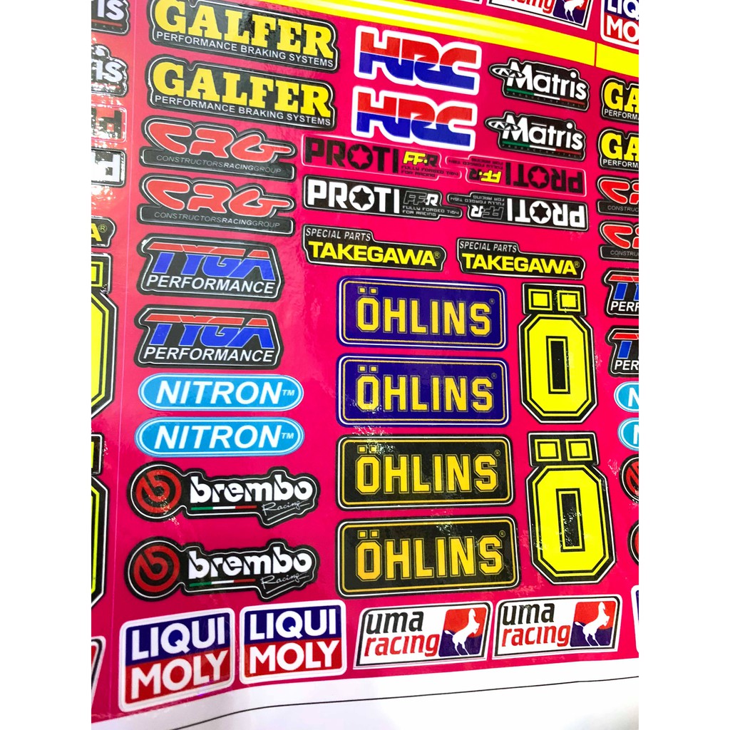 Bộ tem dán nhiều chữ như HRC , Matris , Nitron , Brembo , Ohlins , Uma , Tyga , CRG ...